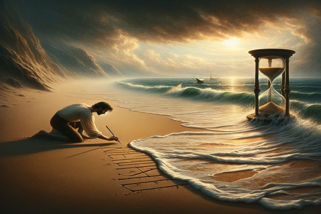 The tide is emblematic of time—relentless, constant, and inevitable in its flow. Just as the tide erases the name written on the sand, time has the power to diminish and erase the traces of our existence, our deeds, and our emotions.