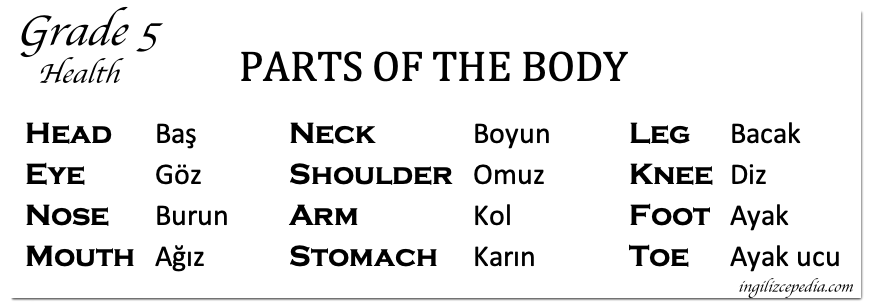 5. sınıf 5. ünite konu anlatımı dersimizde “Health” yani sağlık teması altında önce vücudumuzun bazı bölümlerini öğreneceğiz. Daha sonra önemli hastalık isimlerini ve bu hastalıklara yakalandığımızda bunları nasıl ifade edebileceğimizi göreceğiz. Bunları ifade ederken ilk birinci dersimizde öğrendiğimiz “have/has” yapısını yeniden kullanacağız. En son olarak da yeni bir konu olan “should” yardımcı fiili, “need” fiili ve “let me…” kalıbı ile dersimizi dersimizi bitireceğiz.